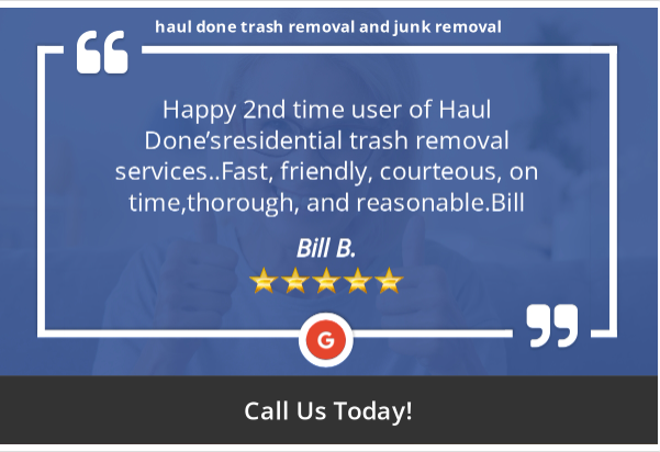 Haul Done® is a licensed (License # 500930) and insured junk hauling and junk removal company. We remove junk, trash, appliances, TV’s, construction materials, mattress, yard waste, etc. from houses, businesses, vacant lots, storage units, farms, and estates.